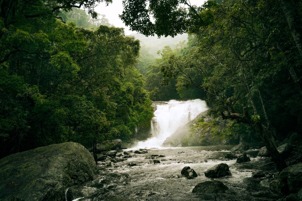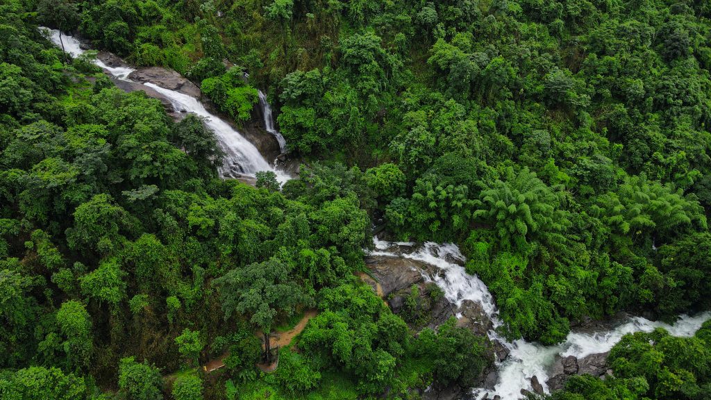 Thusharagiri Waterfalls enveloped in lush greenery